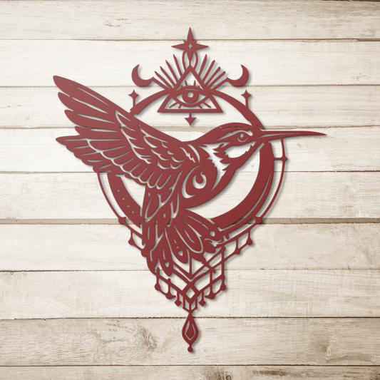 Celestial Hummingbird Metal Wall Art — Moon Garden Decor | Made in USA