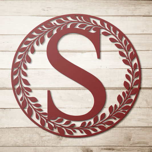 Custom Metal Monogram Wall Art Personalized Wreath Family Name Sign