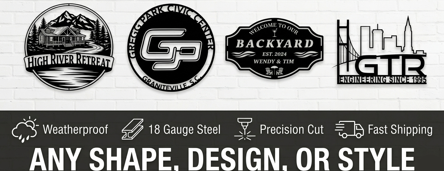 Every personalized metal sign is precision cut from high-quality 18 gauge steel and powder coated for long-lasting outdoor performance. Whether you're looking for custom garage signs, metal address signs, or weatherproof outdoor wall decor, each piece is made to order and built to last for decades.